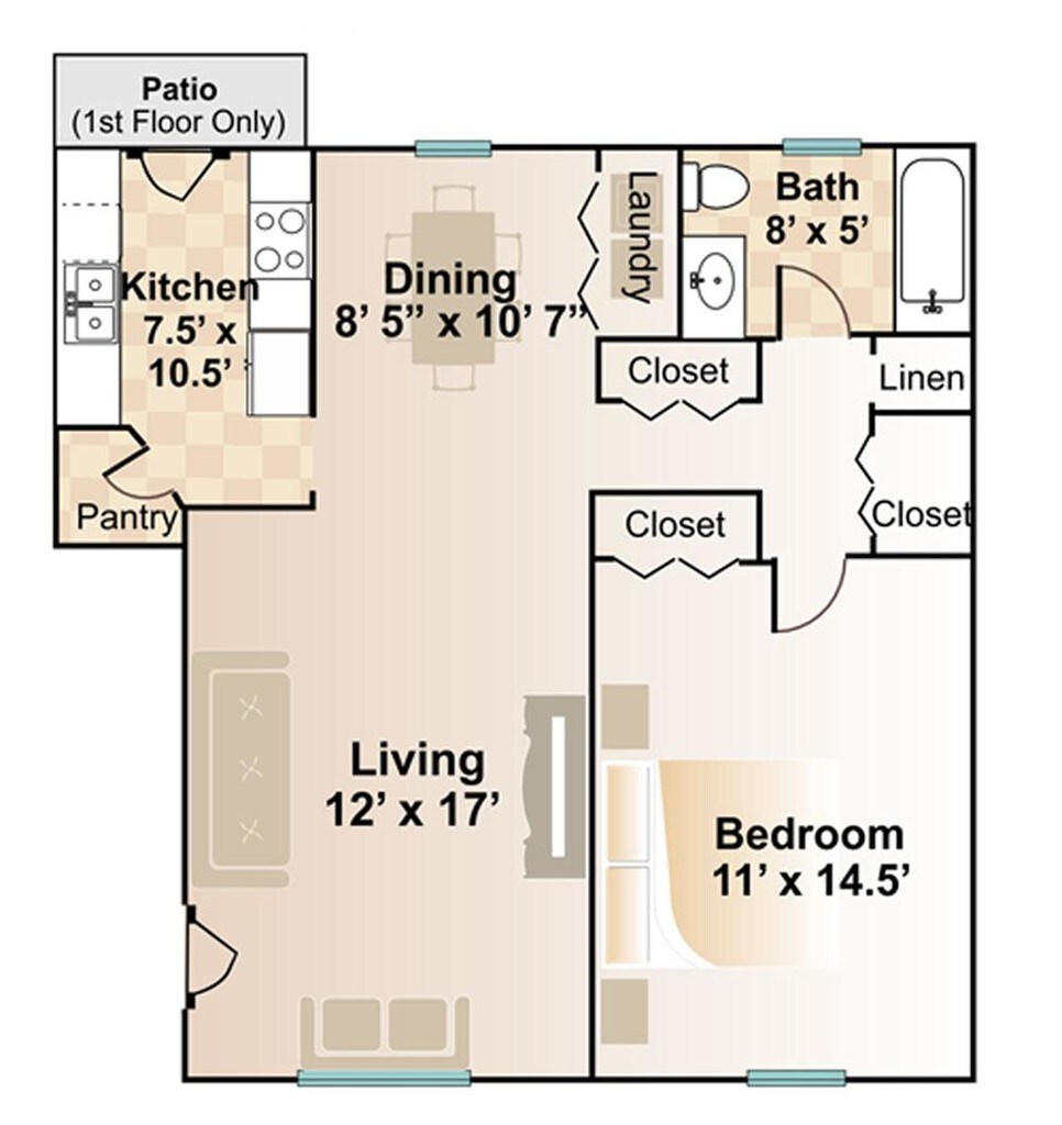 1 Bed, 1 Bath, 765 sq ftAvailable NowModel Gallery