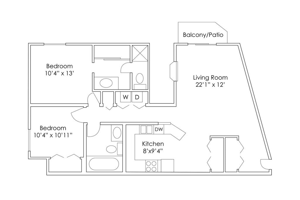 Apartment Model: 2 Bed / 2 Bath2 Bedroom, 2 Bath, 1036 sq ftUnavailableFloorplansPhotos![]()
