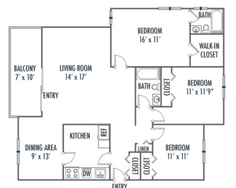 Apartment Model: 1x1$1,7691 Bedroom, 1 Bath, 743 sq ftAvailable Now![]()