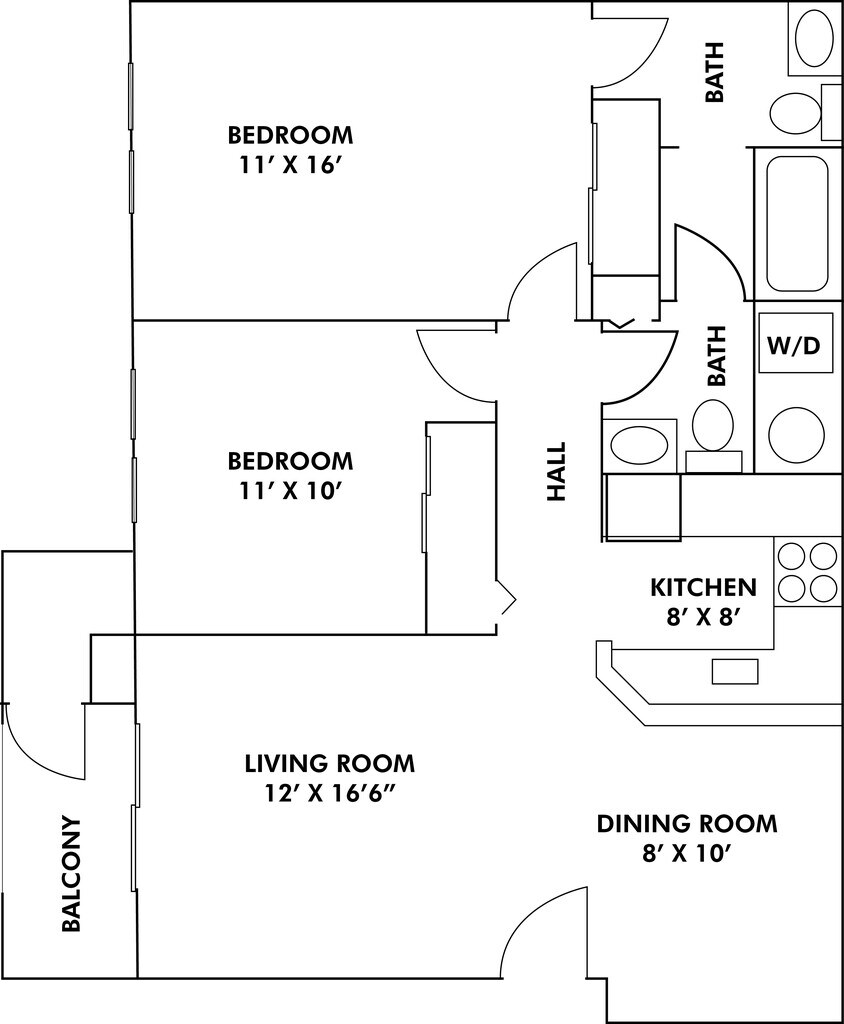 Apartment Model: AlderFrom $1,8752 Bedroom, 2 Bath, 960 sq ftUnavailableAlder - Floorplan 1