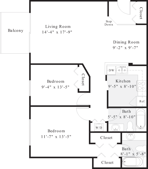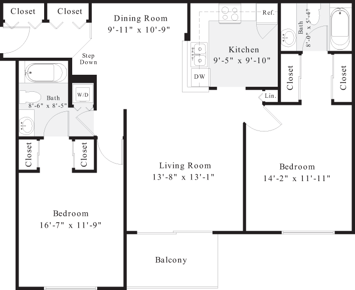 1 Bed, 1 Bath, 862 sq ftAvailable NowModel Gallery