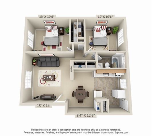 2 Beds, 1 Bath, 955 sq ftAvailable NowModel Gallery