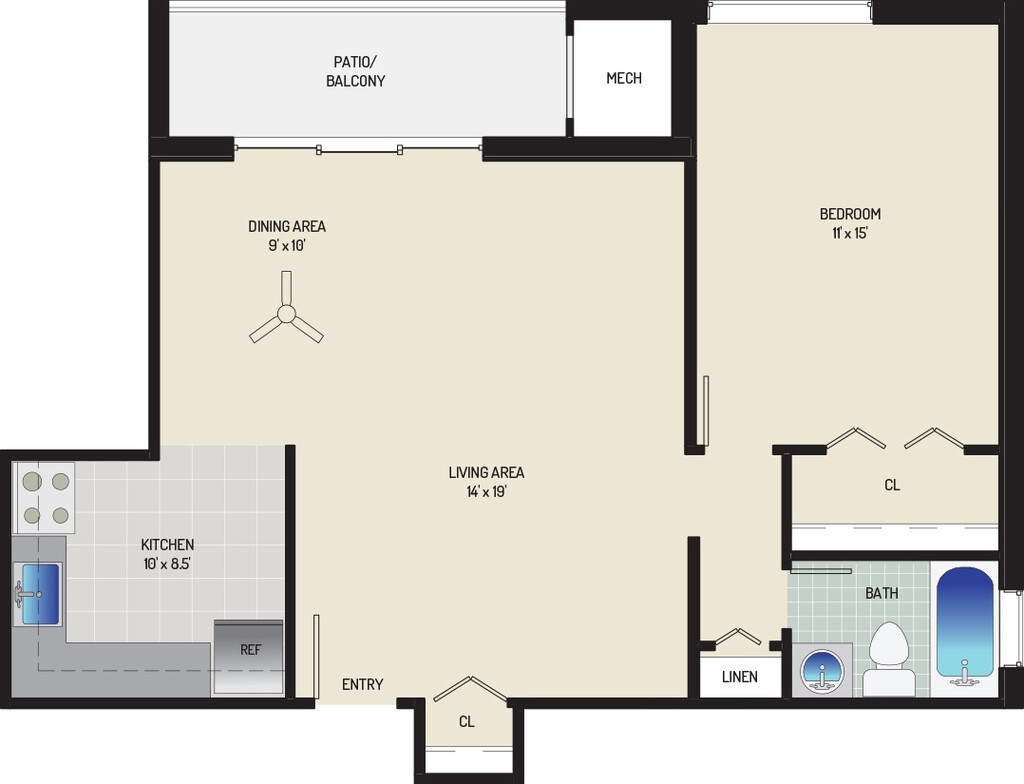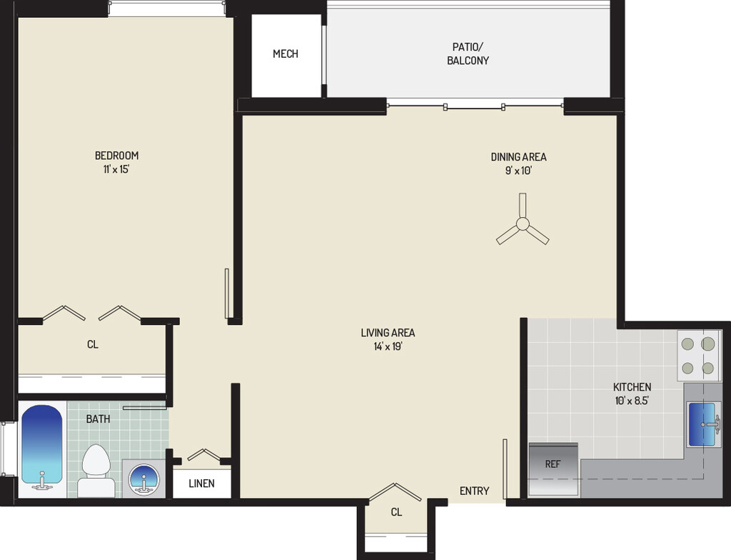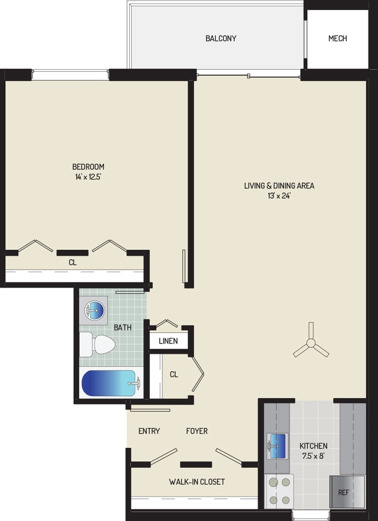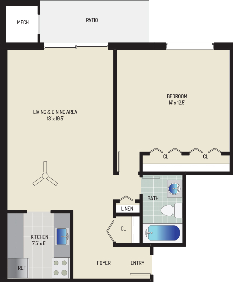 1 Bedroom + 1 Bath - Floorplan 1 ![]()