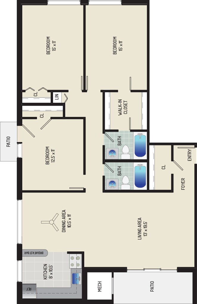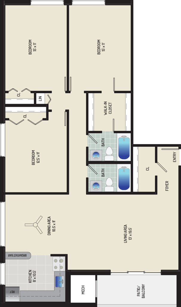 3 Bedrooms + 2 Baths - Floorplan 11 ![]()