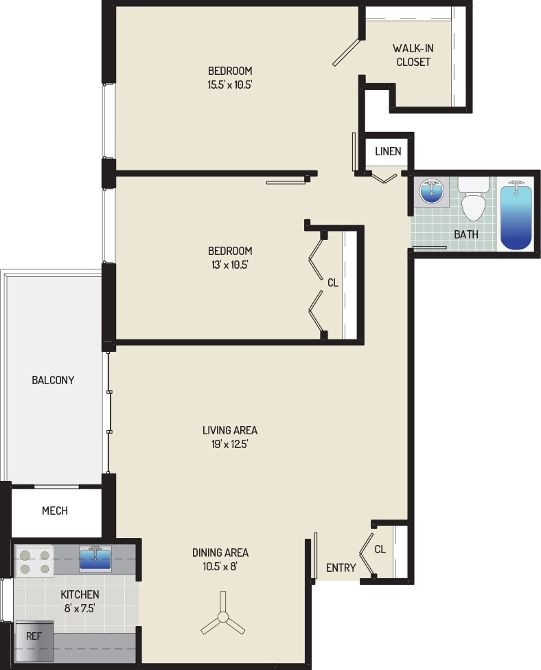 2 Bedrooms + 1 Bath - Floorplan 8 ![]()