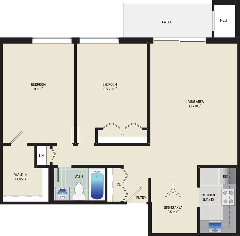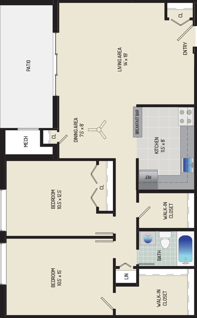 2 Bedrooms + 1 Bath - Floorplan 5 ![]()