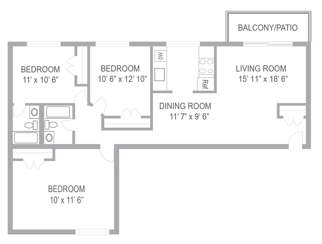 3BR/2BA - Floorplan 1 ![]()