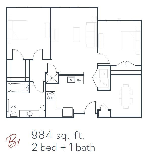 2 Beds, 1 Bath, 984 sq ftModel Gallery