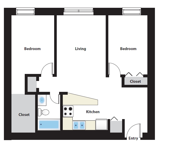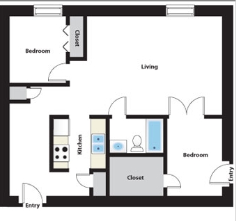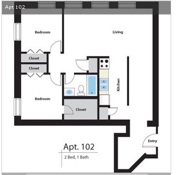 2 Beds, 1 Bath, 700-950 sq ftAvailability Details