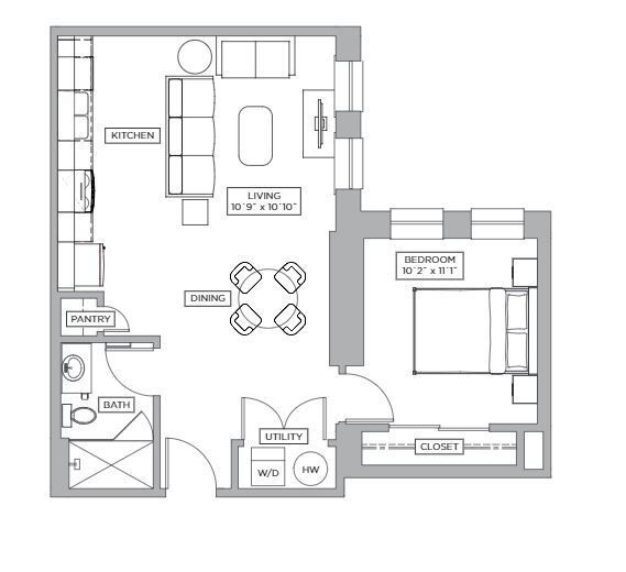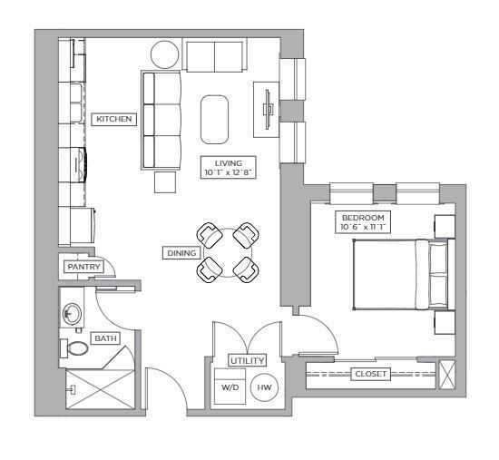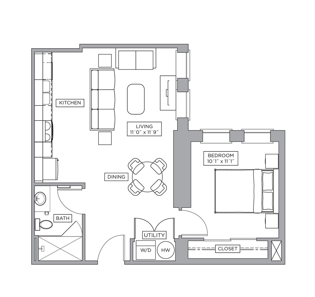 1 Bed, 1 Bath, 640 sq ftModel Gallery