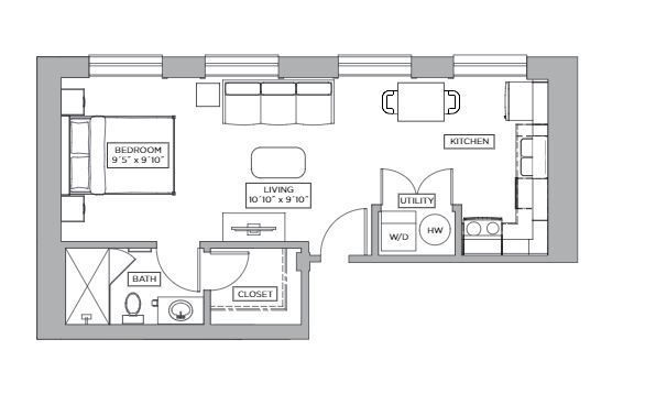 Apartment Model: Unit 206$888Studio, 1 Bath, 490 sq ftUnavailableUnit 206 - Floorplan 1 Unit 306