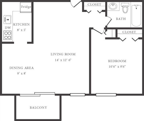 Apartment Model: 1 Bedroom 1 BathroomFrom $7841 Bedroom, 1 Bath, 630 sq ftAvailable Now![]()