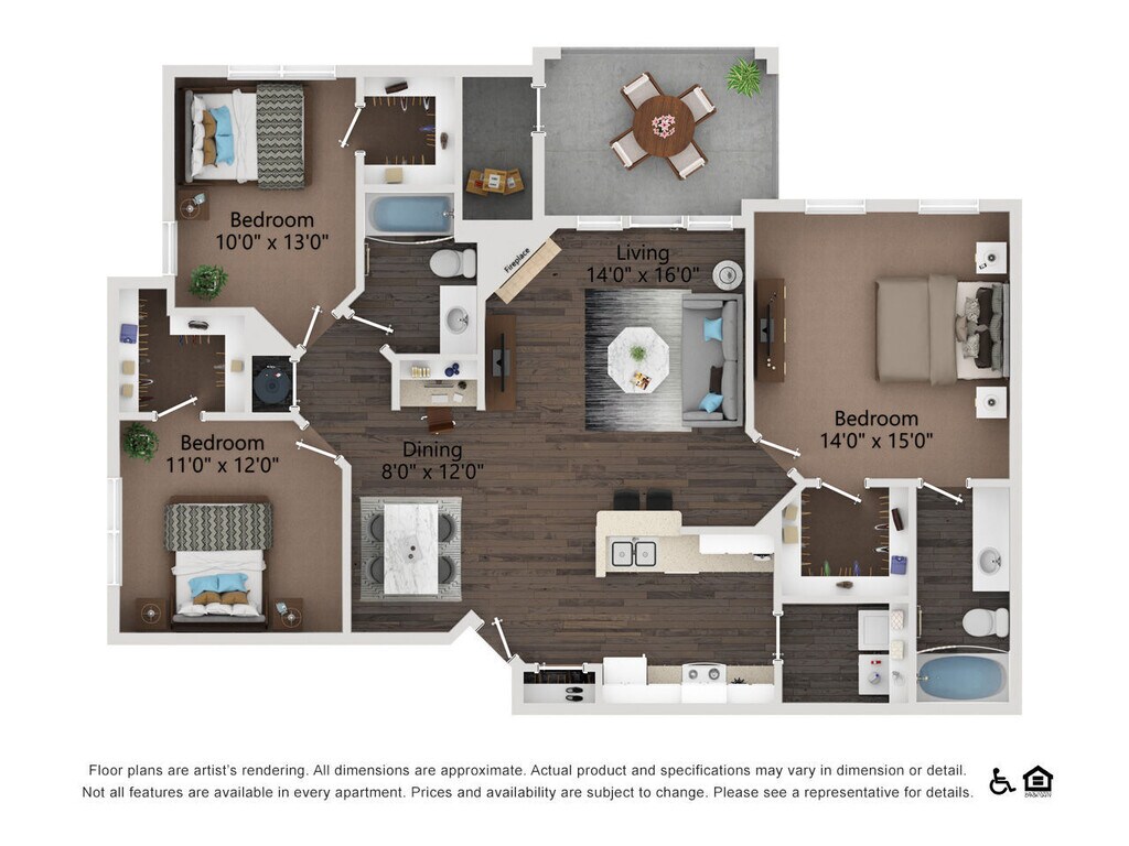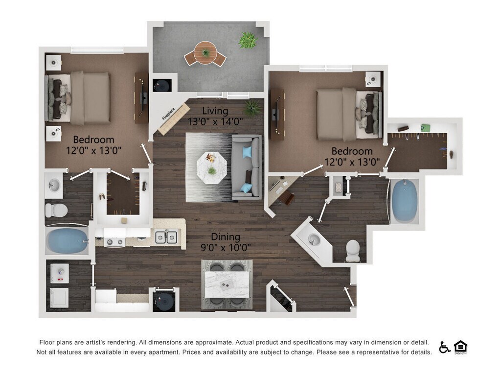 Apartment Model: The Oaks$1,4221 Bedroom, 1 Bath, 753 sq ftAvailable NowFloor plans are artist's rendering. All dimensions are approximate. Actual product and specifications may vary in dimension or detail. Not all features are available in every rental home. Prices and availability are subject to change. Base rent is based on monthly frequency. Additional fees may apply, such as but not limited to package delivery, trash, water, amenities, etc. Deposits vary. Please see a representative for details.