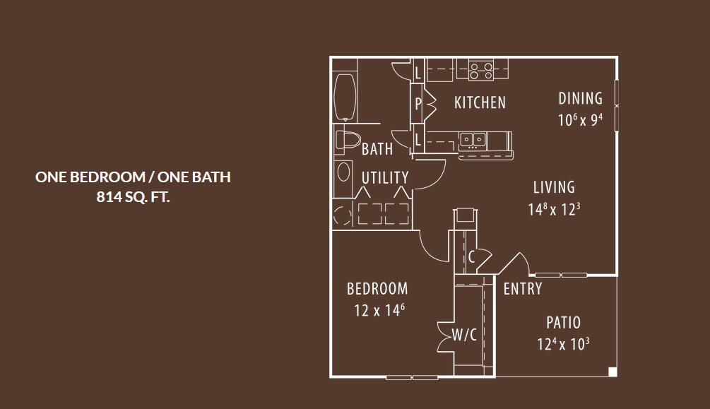 Apartment Model: A150From $1,0101 Bedroom, 1 Bath, 814 sq ftAvailable Now![]()