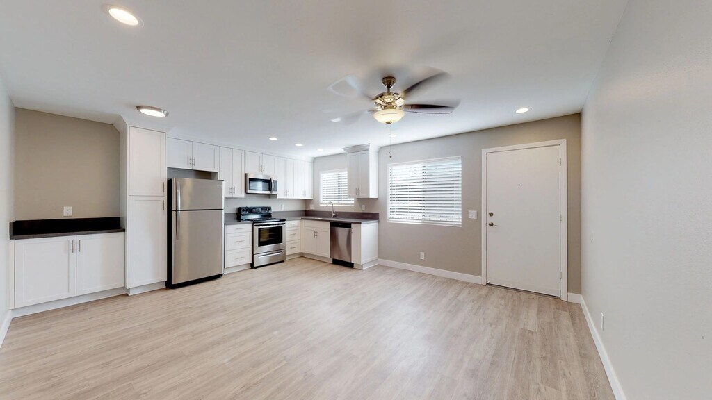 Welcome to Arroyo Vista! Discover your new home nestled within the serene pathways of our charming garden-style community. Unwind in our spacious communal spaces designed for residents to enjoy. Conveniently located with easy freeway access, Arroyo Vista, offers seamless exploration of San Diego's vibrant attractions. Enjoy quick 15-20 minute drives to North Park, Coronado, Downtown San Diego, Mission Valley, and Lake Murray. Home features: - Stainless steel appliances including dishwasher - Open concept floor plan -Custom white soft closing cabinets - Quartz counter tops - Brushed nickel fixtures - Custom paint - Wood-style flooring - Ceiling fans - Off-street parking - Outdoor spaces with select homes We are PET-FRIENDLY and allow all dogs regardless of weight or breed with an additional deposit of $250 and $55 monthly per pet. Pictures may not be of actual home. Pricing may vary and is subject to change without notice. We follow all City of San Diego occupancy guidelines. F&F Property Management is an equal opportunity housing provider.
