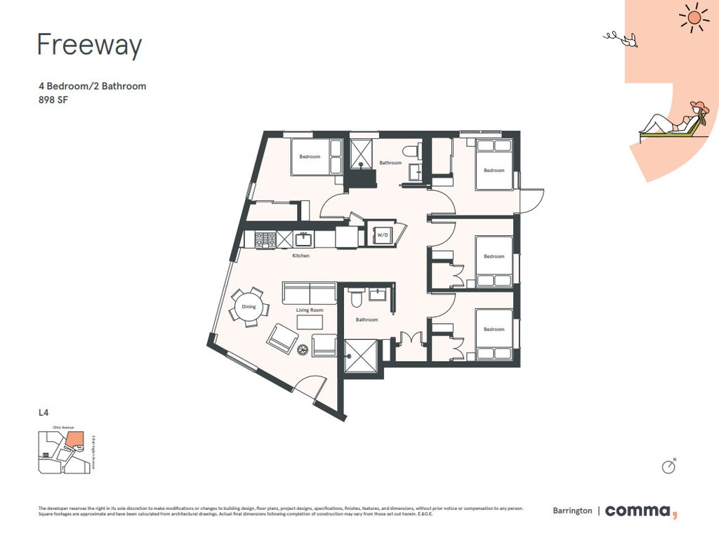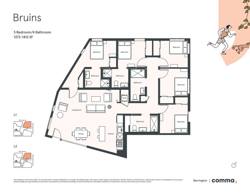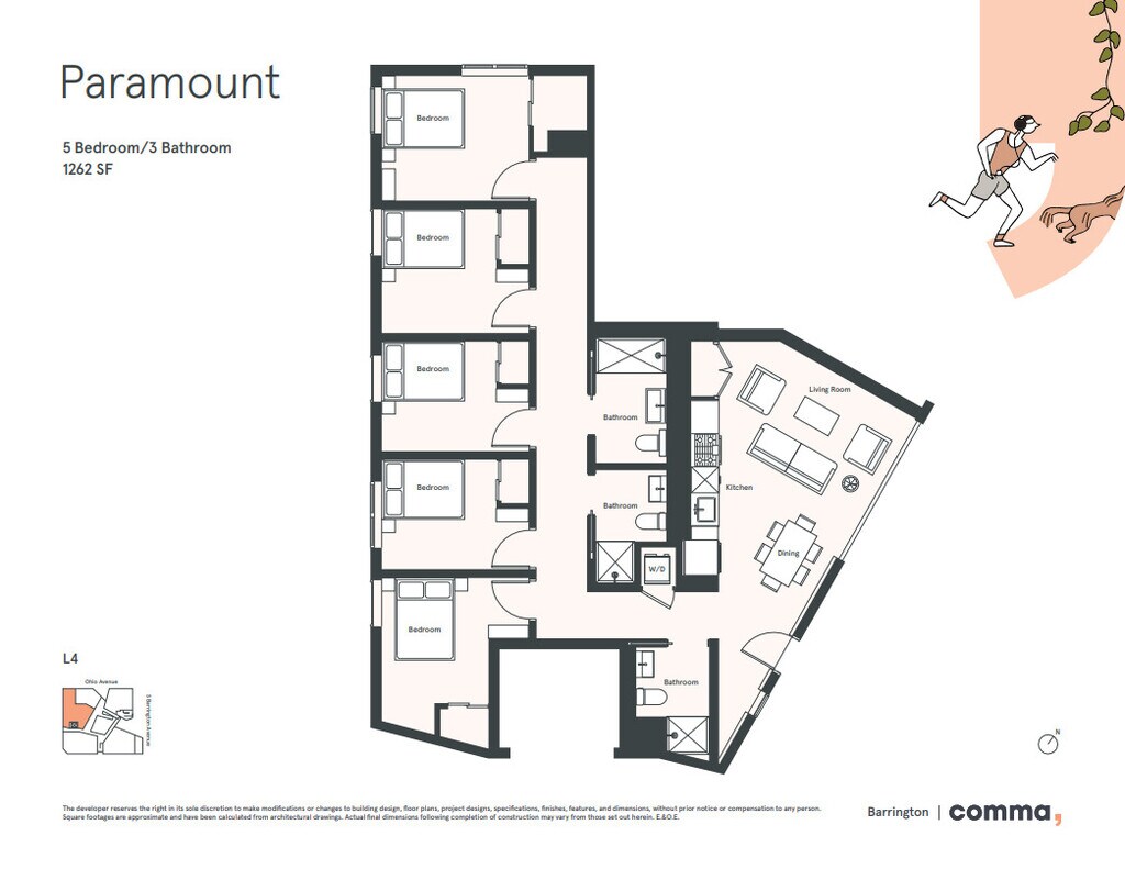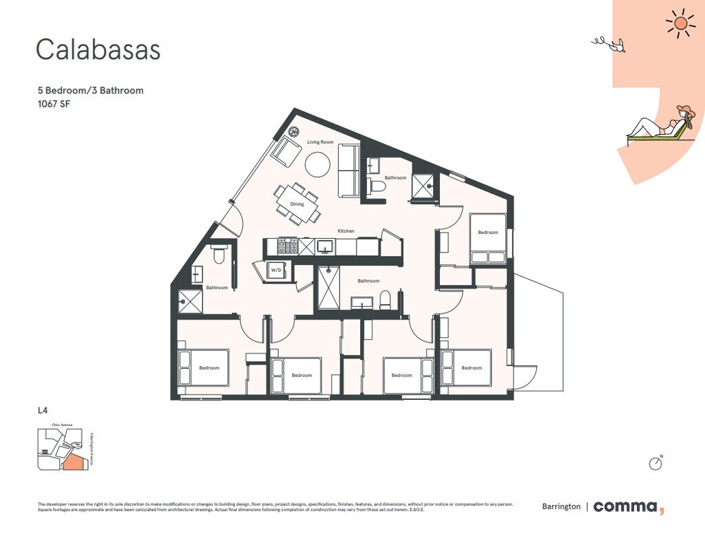 4 Bedroom to 5 Bedroom Apartments at Comma Barrington currently range from $1,350 to $1,415