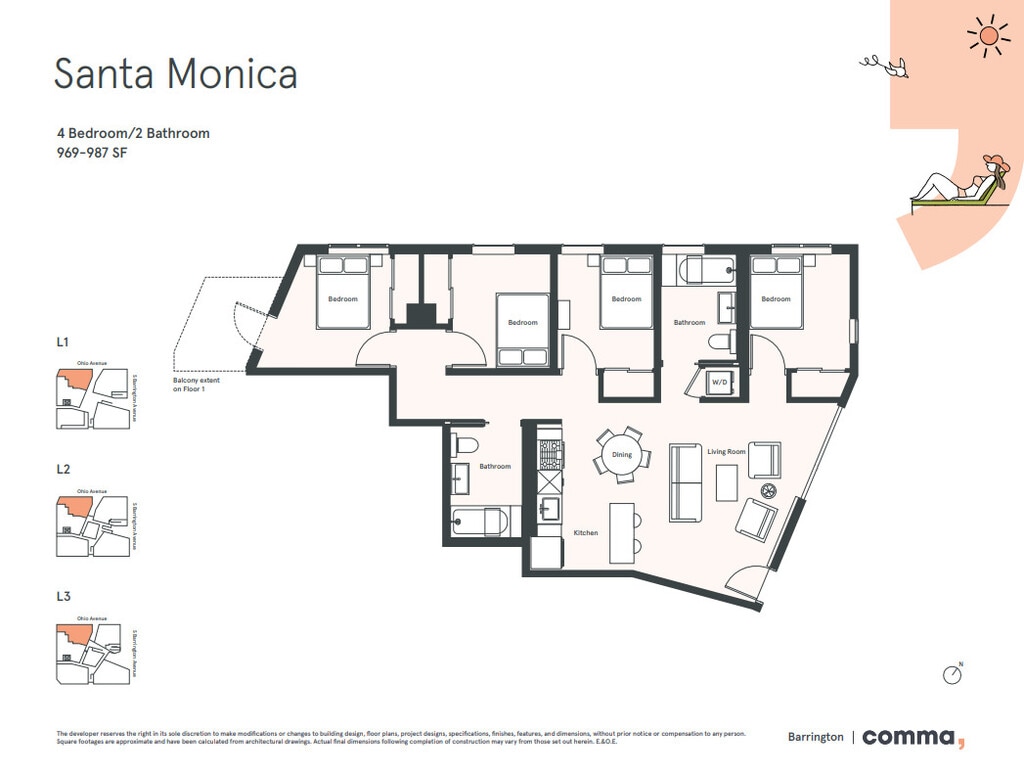Comma Barrington offers 4 to 5 Bedroom apartments starting from $1,350 and having 897–1,421 sq ft. Here is the current pricing and availability: