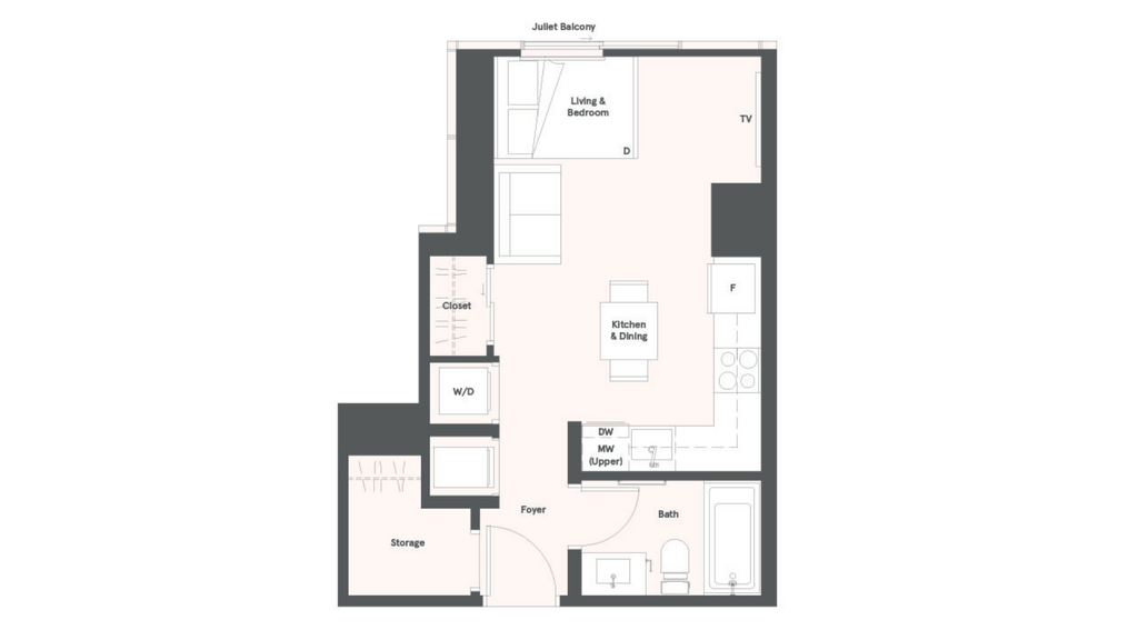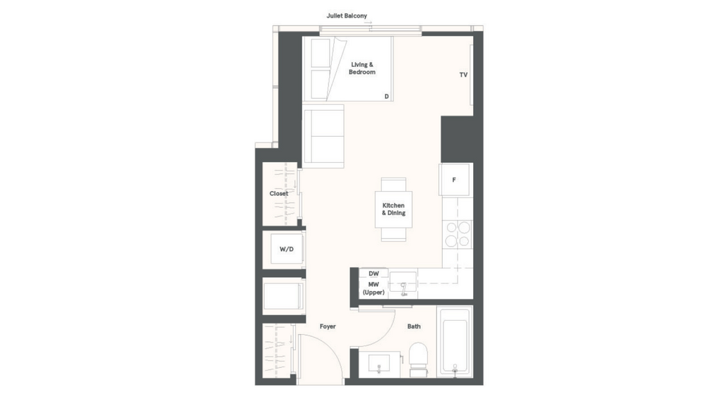 Apartment Model: A$1,710Studio, 1 Bath, 403 sq ftAvailable NowA - Floorplan 1 Apartment Unit: 0301Apartment Model: A$1,710Studio, 1 Bath, 403 sq ftAvailable NowFloorplan A1