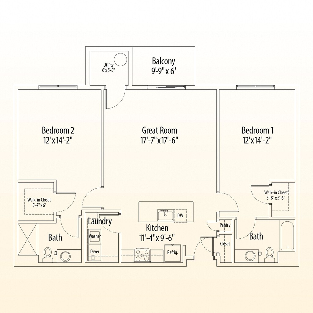 - 2 Bedrooms- Floorplan cpC2 Beds, 2 Baths, 1217 sq ft- Model Gallery- Floorplans- Availability Details- Price - Availability Date - Unit - Sq Ft - $1,695 - Call for Availability - cpC - 1217 sq ft - Model Amenities and Features- Features- Air Conditioning