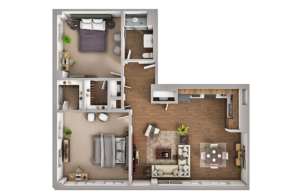 2 Beds, 1 Bath, 924-1050 sq ftAvailable NowModel Gallery
