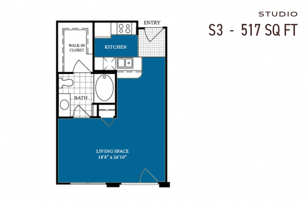 Apartment Model: Studio S3Call For RatesStudio, 1 Bath, 517 sq ftUnavailableStudio S3 - Floorplan 1 Studio S4
