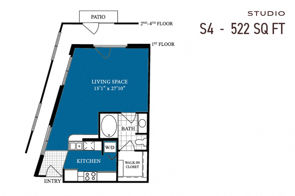 Apartment Model: Studio S4Call For RatesStudio, 1 Bath, 522 sq ftUnavailableStudio S4 - Floorplan 1 Studio S4p Renovated