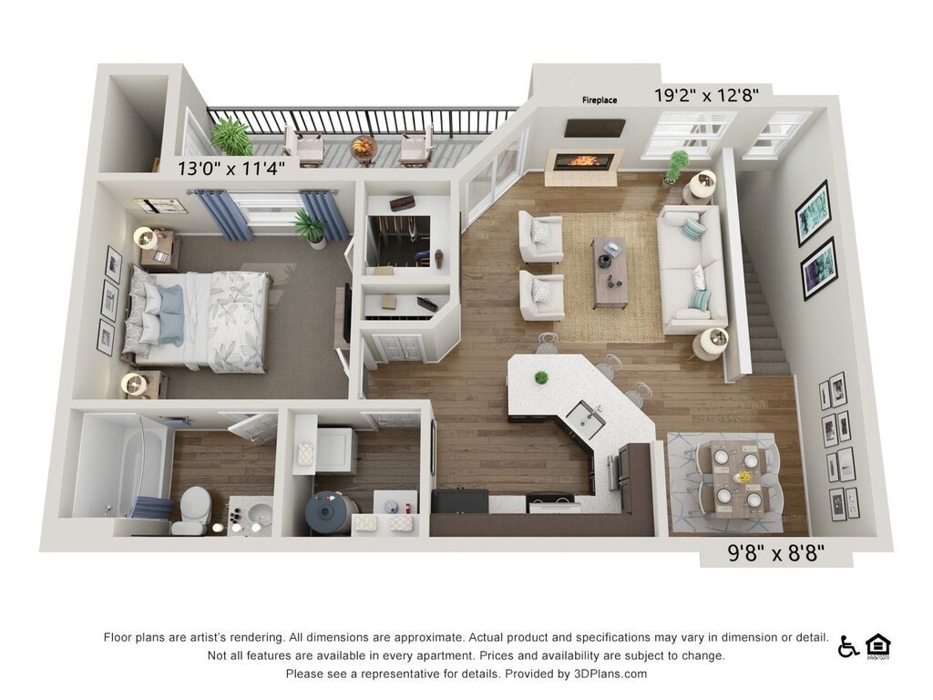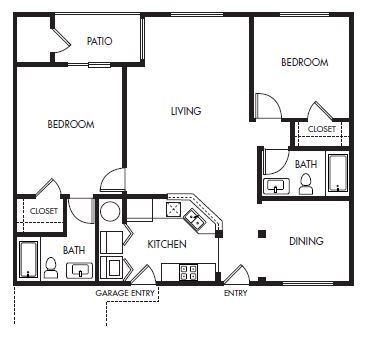 Apartment Model: EliteFrom $1,5422 Bedroom, 1 Bath, 888 sq ftAvailable NowFloor plans are artist's rendering. All dimensions are approximate. Actual product and specifications may vary in dimension or detail. Not all features are available in every rental home. Prices and availability are subject to change. Base rent is based on monthly frequency. Additional fees may apply, such as but not limited to package delivery, trash, water, amenities, etc. Deposits vary. Please see a representative for details.