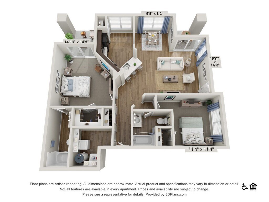 2 Beds, 2 Baths, 1052 sq ftModel Gallery