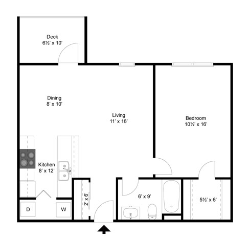 Studio, 1 Bath, 510 sq ftAvailable NowModel Gallery
