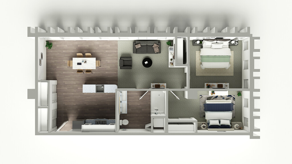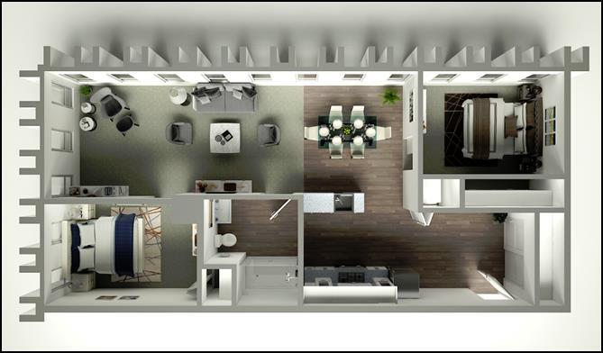 2 Beds, 1 Bath, 833 sq ftModel Gallery