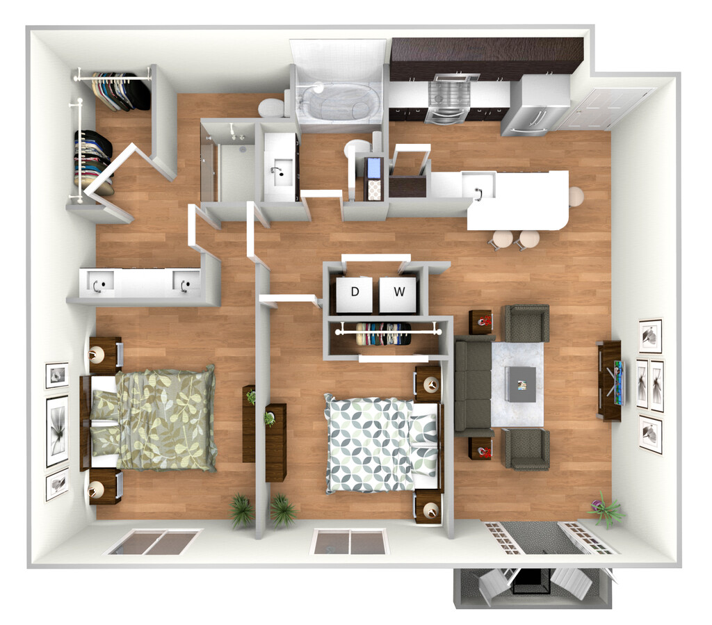 2 Beds, 2 Baths, 1020 sq ftModel Gallery