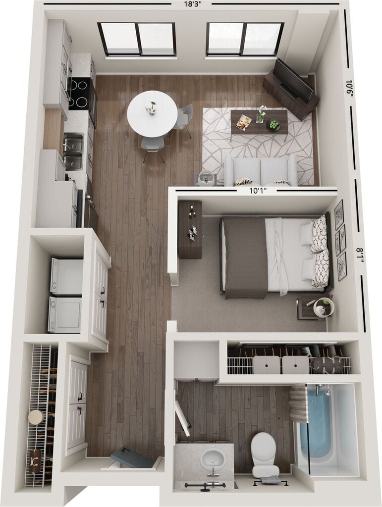 Apartment Model: Hunter (A1)From $950Studio, 1 Bath, 551 sq ftAvailable Now![]()