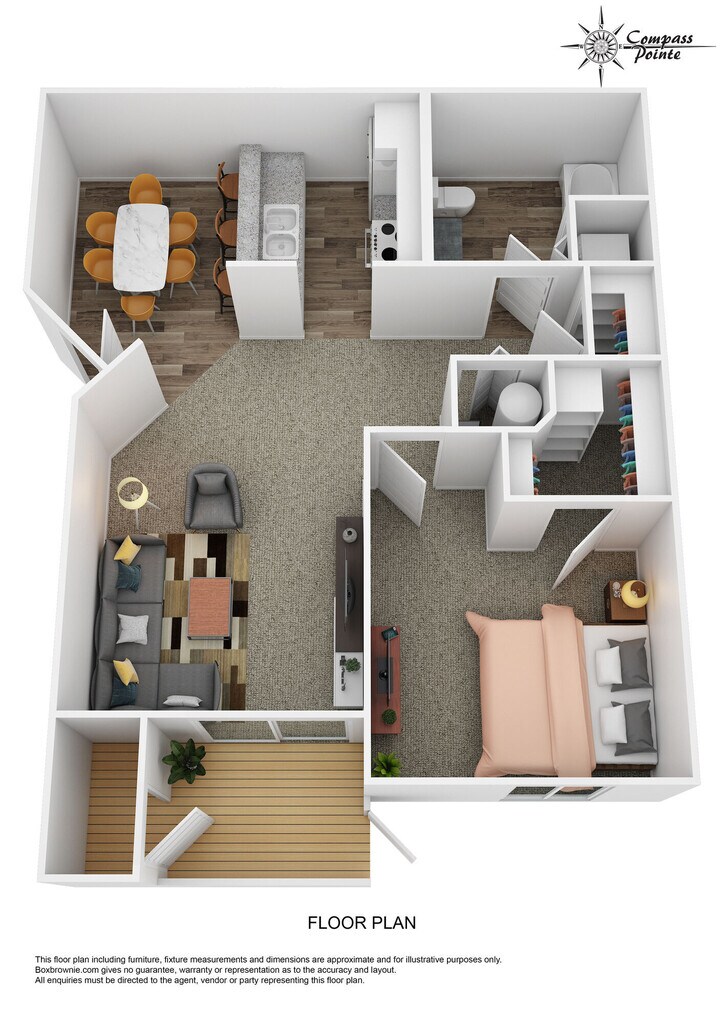 Compass Pointe Apartments offers 1 to 3 Bedroom apartments starting from $1,302 and having 758–1,308 sq ft. Here is the current pricing and availability: