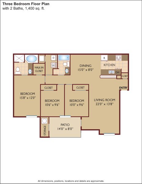Apartment Model: $1.52/sq.ft. - Three BedroomFrom $2,1253 Bedroom, 2 Bath, 1400 sq ftAvailable Now![]()