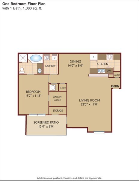 $1.43/sq.ft. - Two Bedroom/ One Bath - Floorplan 1 3 Bedrooms