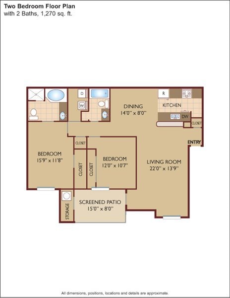 Apartment Model: $1.34/sq.ft. - Two Bedroom/ Two BathFrom $1,6252 Bedroom, 2 Bath, 1270 sq ftAvailable Now![]()