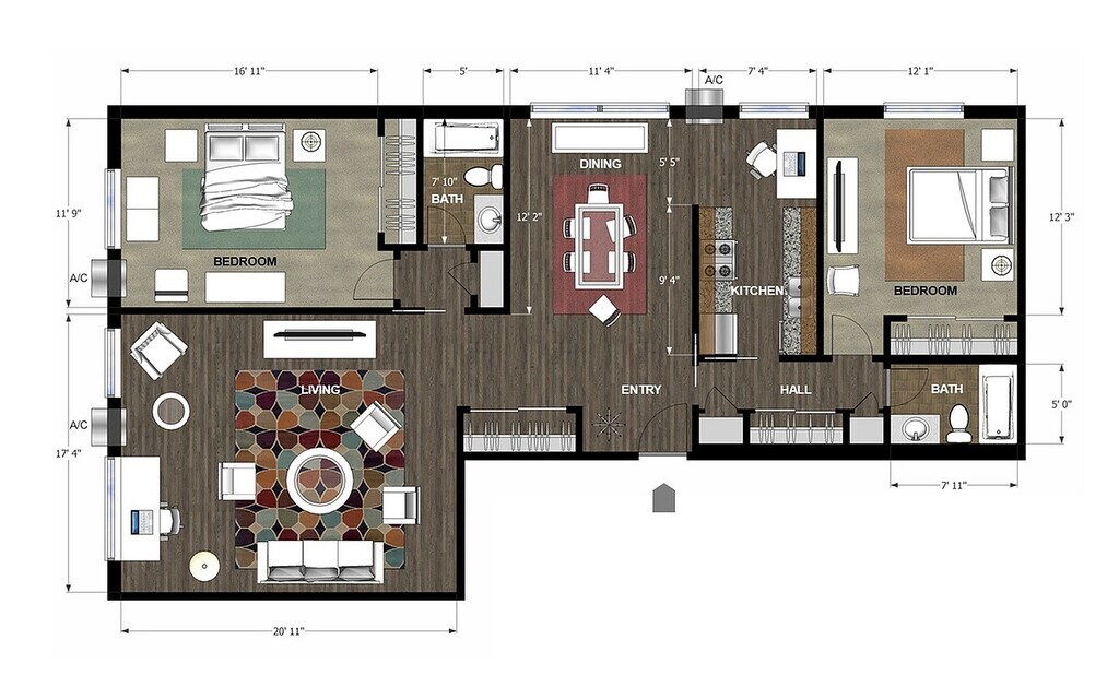 2 Beds, 2 Baths, 1300 sq ftModel Gallery