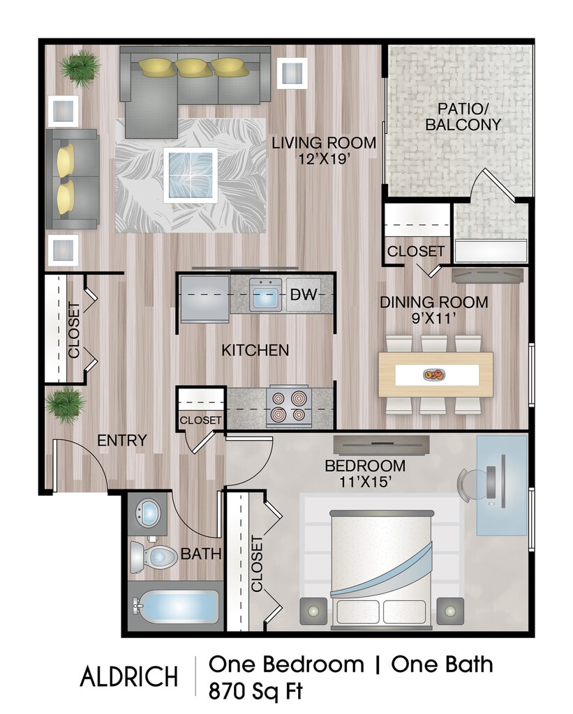 Apartment Model: AldrichFrom $1,7051 Bedroom, 1 Bath, 870 sq ftAvailable Now![]()