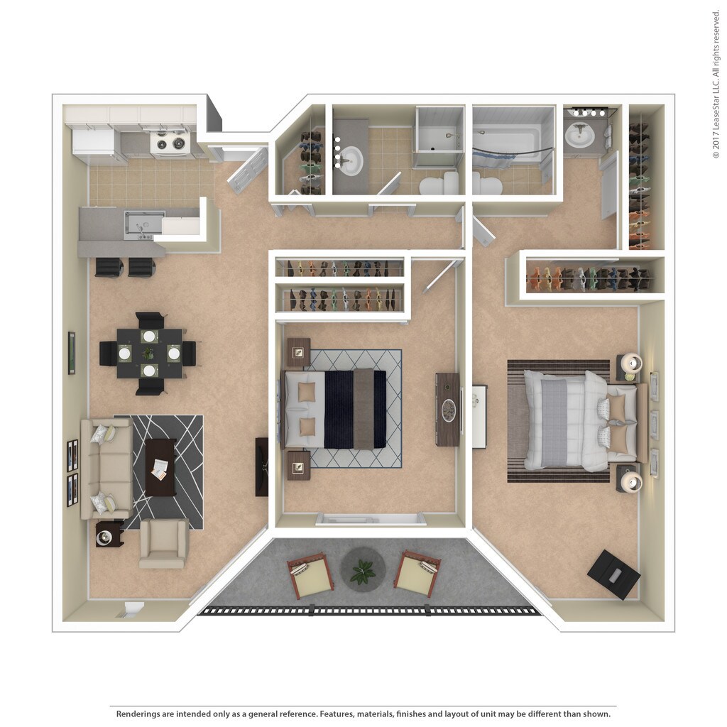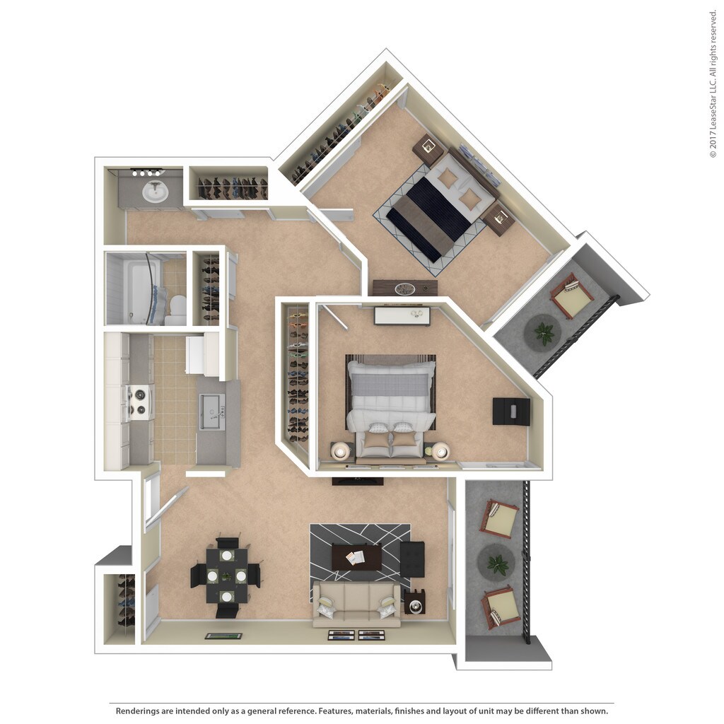 2 Beds, 2 Baths, 925 sq ftAvailable NowLargest 2 BedroomThis is the largest 2 Bedroom at this PropertyModel Gallery