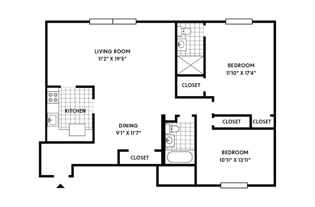 2 Bedroom, 2 Bath - Floorplan 1 ![]()