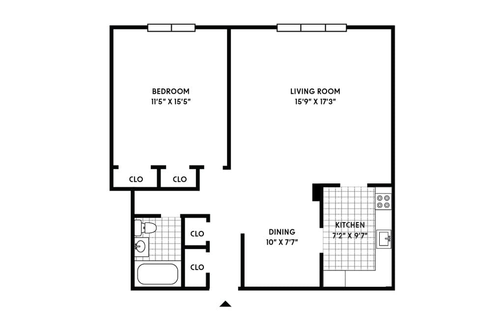 1 Bedroom - Floorplan 1 Apartment Unit: 2DApartment Model: 1 Bedroom$2,2991 Bedroom, 1 Bath, 800 sq ftAvailable Now2 Bedrooms