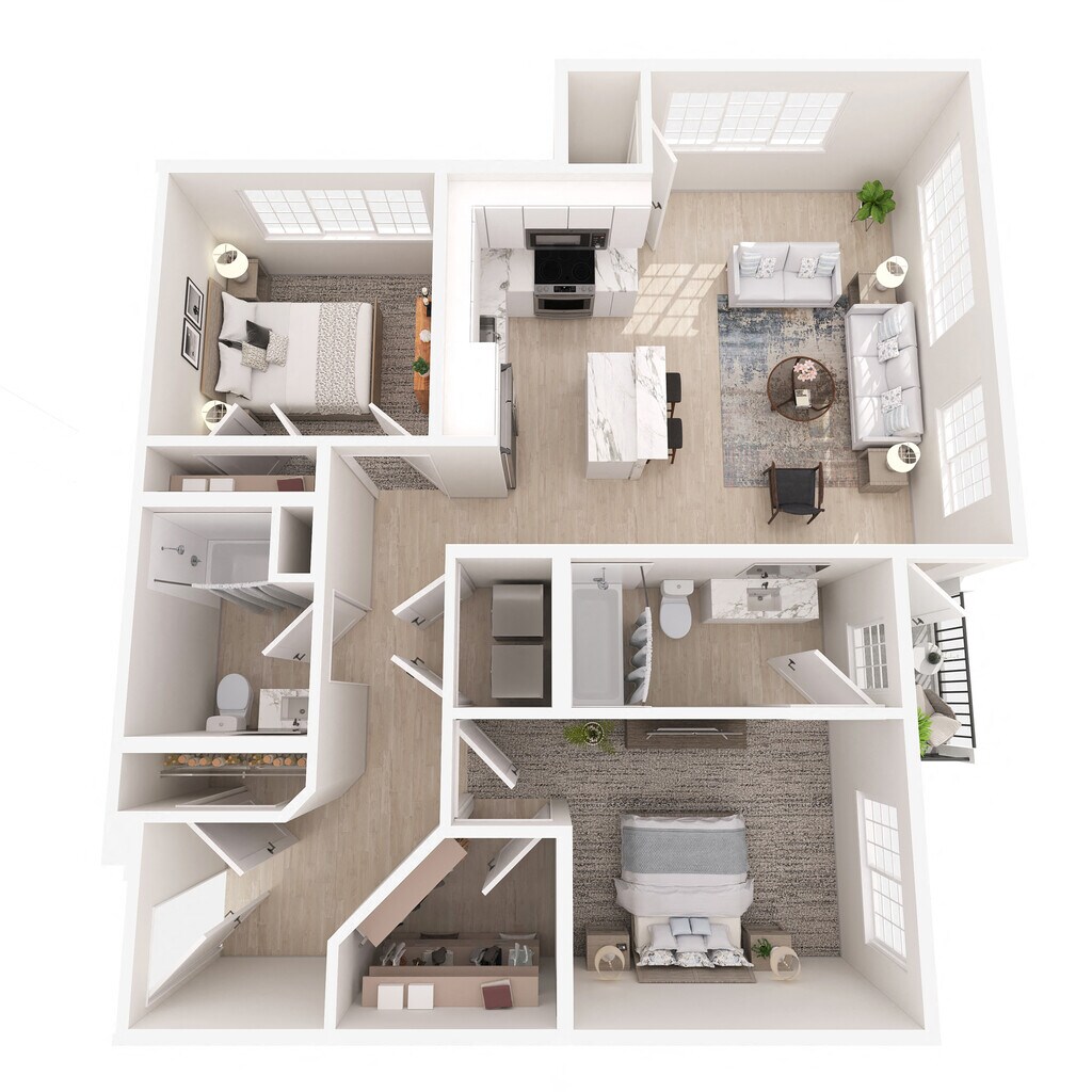 1 Bed 1 Bath - Floorplan 4 Apartment Unit: 123Apartment Model: 1 Bed 1 BathFrom $1,6101 Bedroom, 1 Bath, 687 sq ftAvailable NowApartment Unit: 221Apartment Model: 1 Bed 1 BathFrom $1,6901 Bedroom, 1 Bath, 755 sq ftAvailable December 1, 20252 Bedrooms