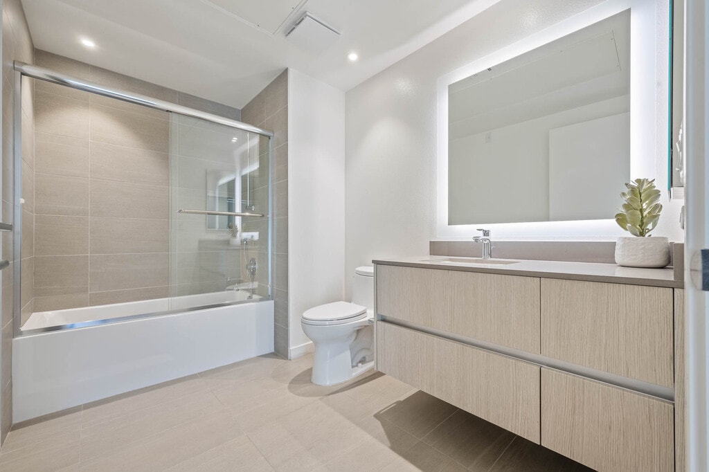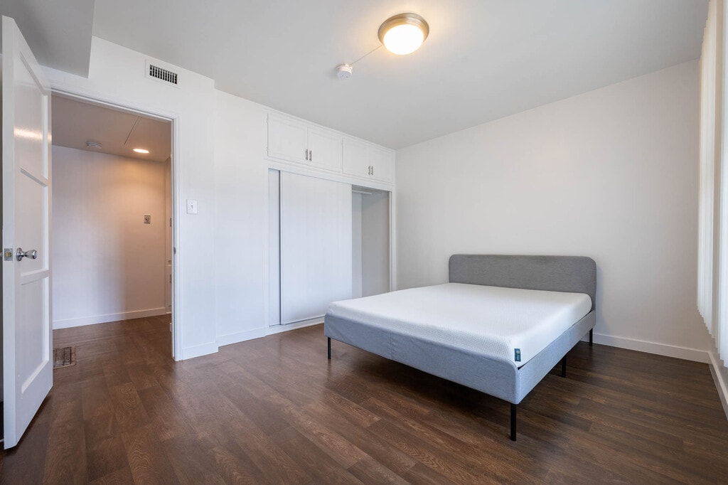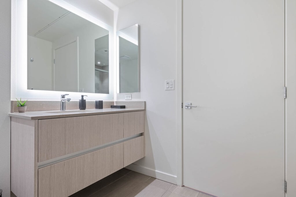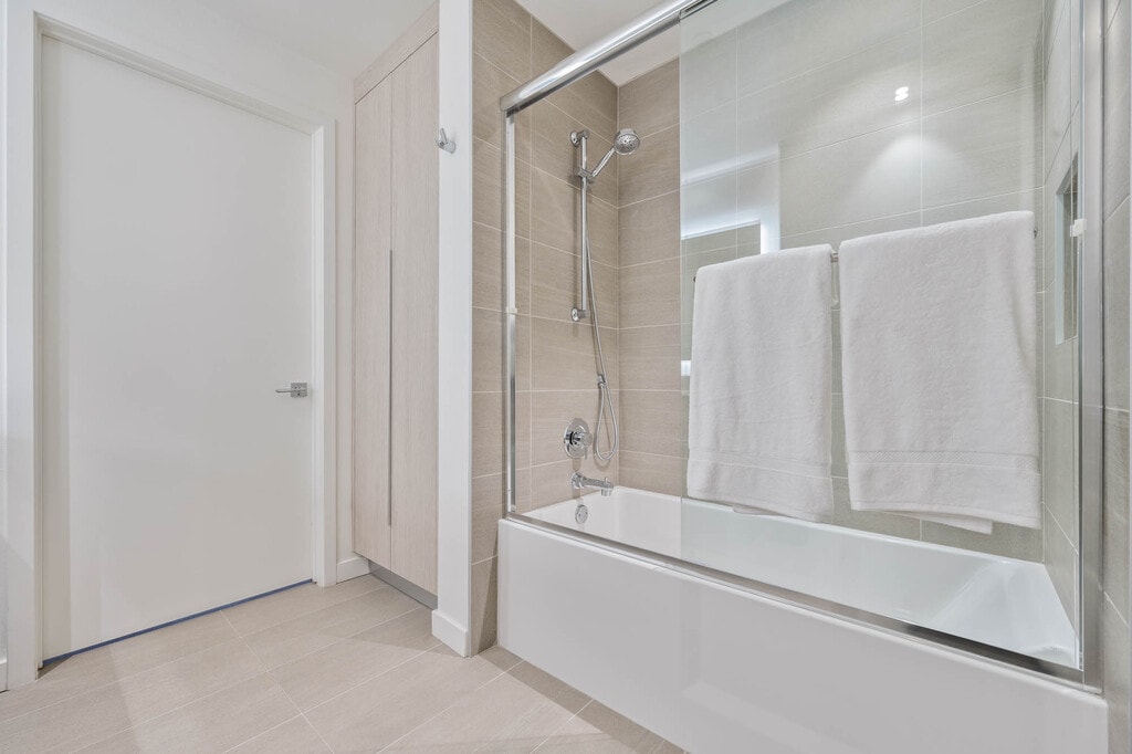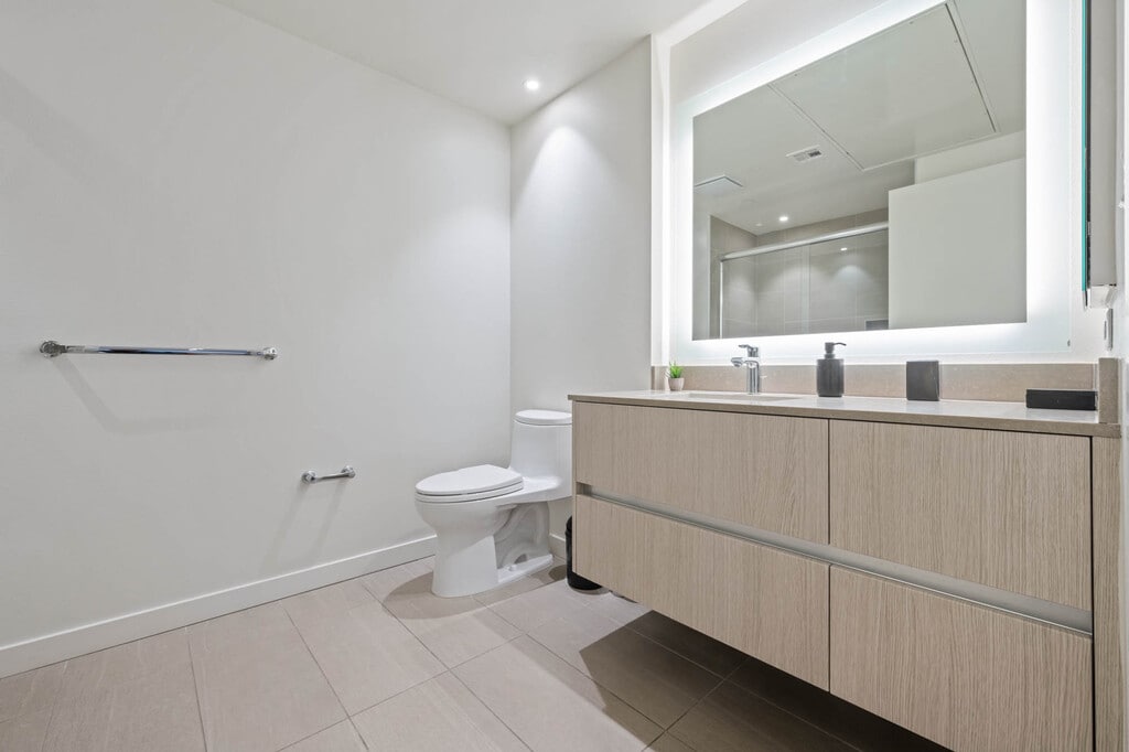 Enjoy modern living in a private room within a brand-new shared home. Central air and heat, large windows and recessed lighting brighten the space, a spacious balcony, shared gourmet kitchen featuring stainless steel appliances, quartz counters, custom cabinets, and an oversized fridge. Enjoy a walk-in closet, luxe shared bath, $35/month bundled utilities, in-unit laundry, and resort-style amenities. *MODEL UNIT SHOWN - Details may vary*