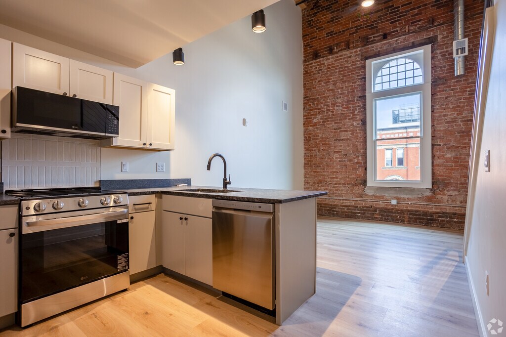 New construction, loft-style units in downtown Kalamazoo. These units feature high end appliances, hardwood flooring, granite countertops, and more.