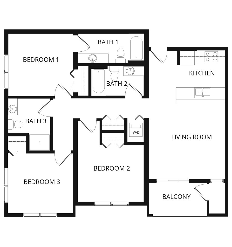 Availability Date Unit Sq Ft Unavailable 3x3 L 1275 sq ft Apartment Model: 3x3 L3 Bedroom, 3 Bath, 1275 sq ftUnavailable3x3 L - Floorplan 1