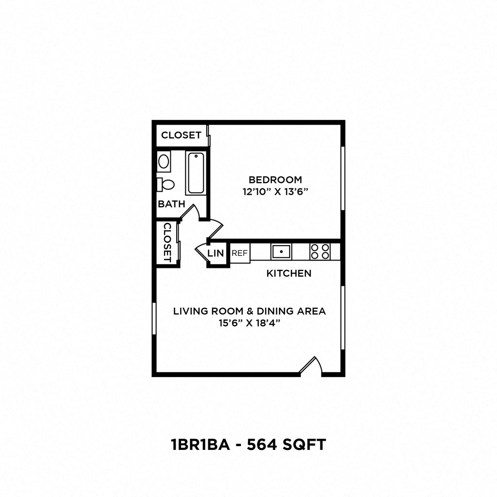 One Bedroom - 564 sqft - Floorplan 1 ![]()