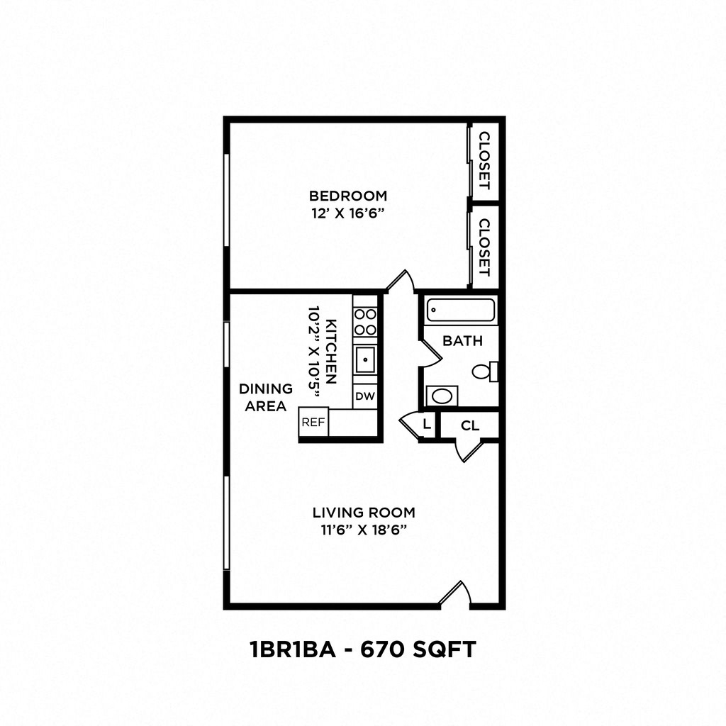 One Bedroom - 670 sqft - Floorplan 1 ![]()