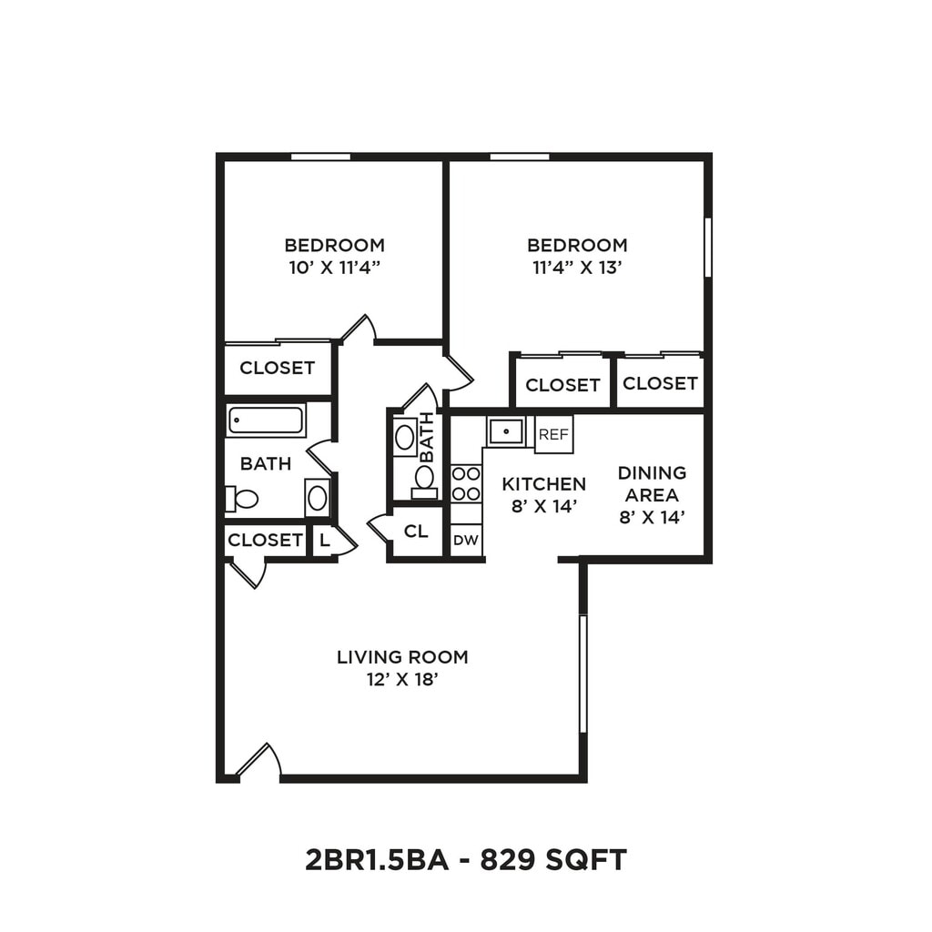 2 Beds, 1.5 Baths, 829 sq ftAvailable NowModel Gallery