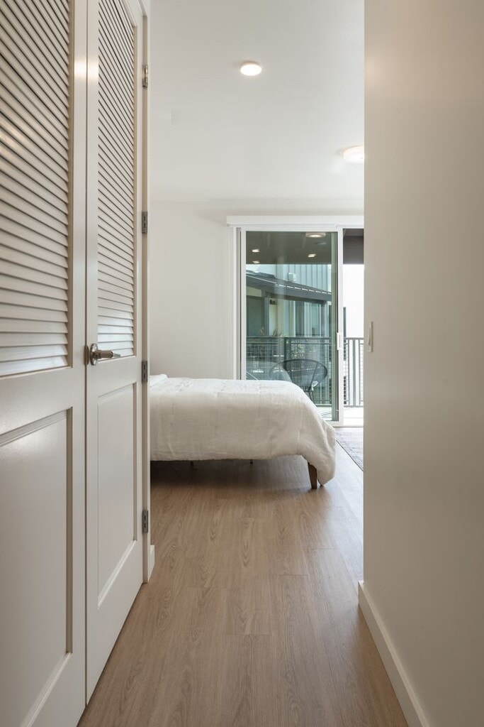 These modern and cozy studio apartments offer all the great amenities of our other studios, with the exception of a balcony or patio. While the absence of an outdoor space may shift how you use your home, it means enhanced privacy, simplified upkeep, and tremendous value reflected in the rental price—making these studios an ideal choice for those who prefer the ease of all-indoor living or prioritize affordability and comfort. Key Features: - Efficient Layout: Enjoy an open-concept design that maximizes space with 9-foot ceilings and large windows for natural light. - Modern Amenities: Equipped with in-unit laundry, stainless steel appliances, and, simulated hardwood floors. - Prime Location: Just steps from Downtown SLO, you’ll have easy access to shops, restaurants, and local attractions. - Community Perks: Benefit from a 24-hour fitness center, co-working hub with high-speed internet, and secure bike storage.