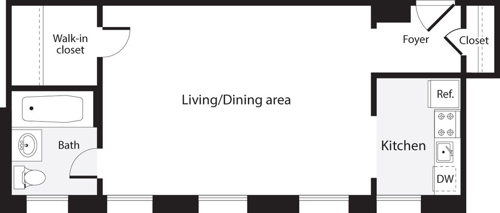 Studio D - Floorplan 1 Apartment Unit: 03-0307Apartment Model: Studio D$1,650Studio, 1 Bath, 450 sq ftAvailable January 9, 2026Studio A